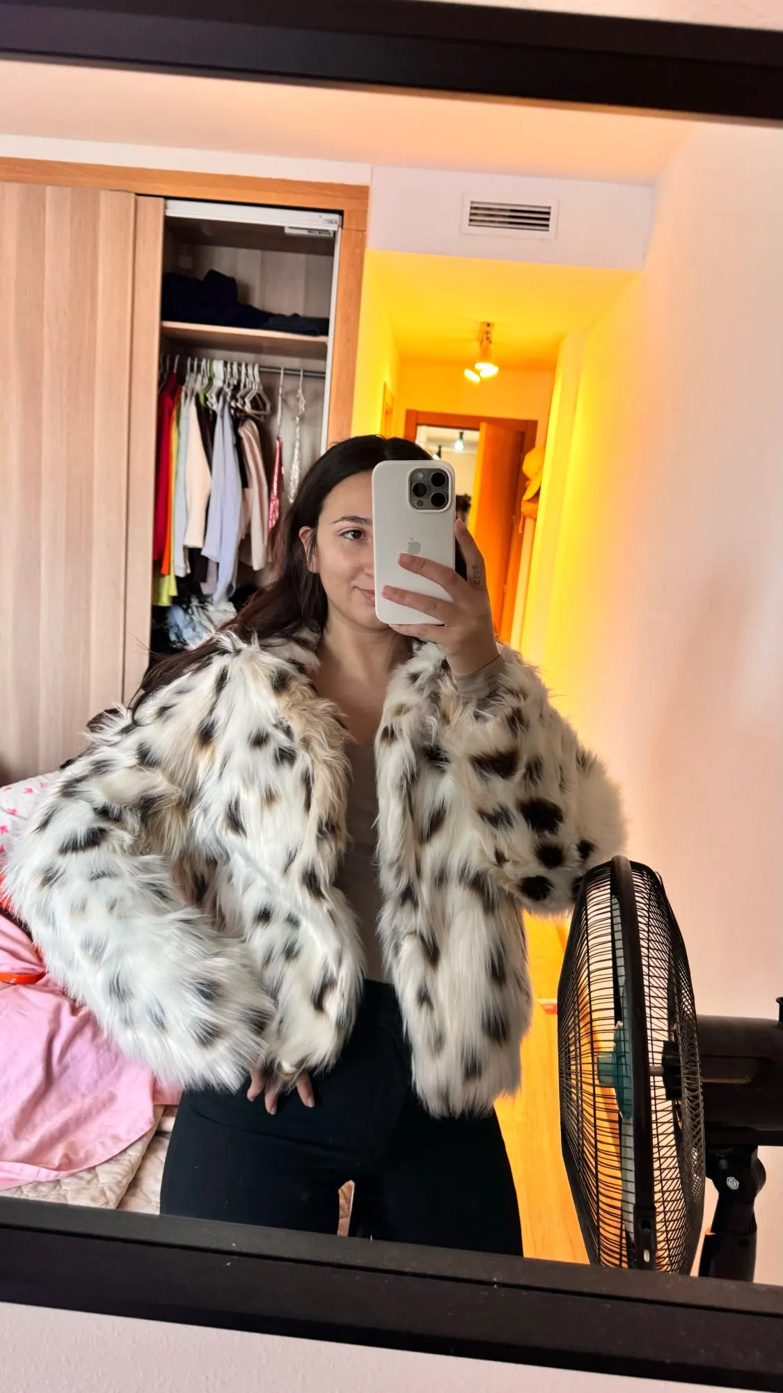 New lapel leopard print imitation fur coat