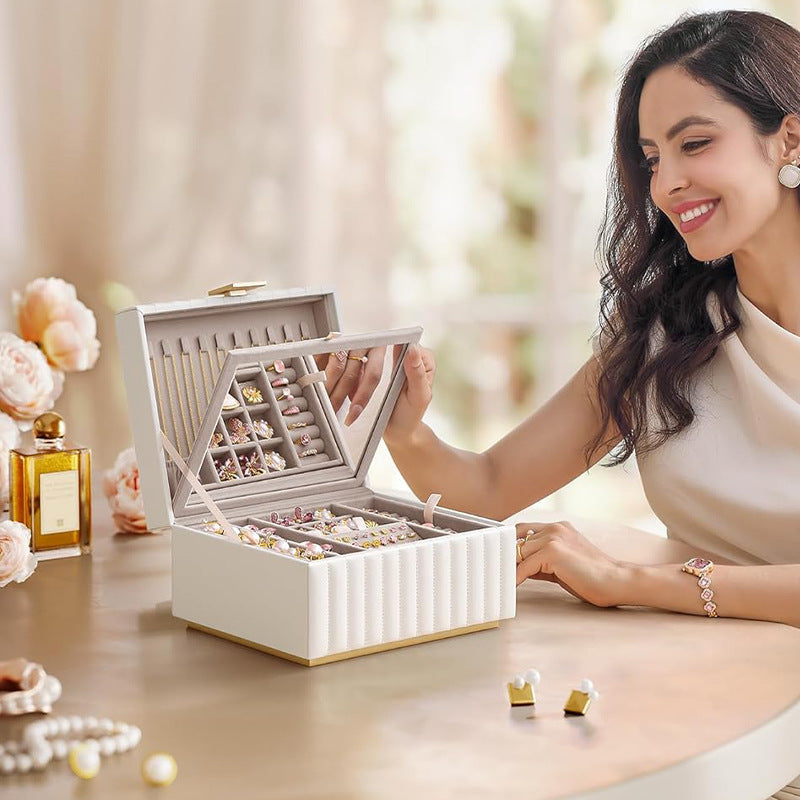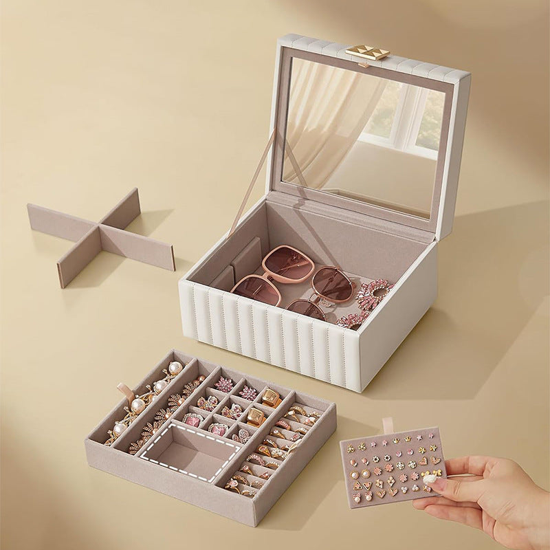 Clamshell metal square jewelry box Large capacity bedroom with mirror jewelry box earrings necklace storage box