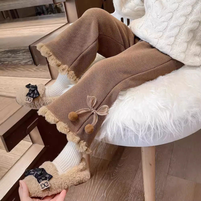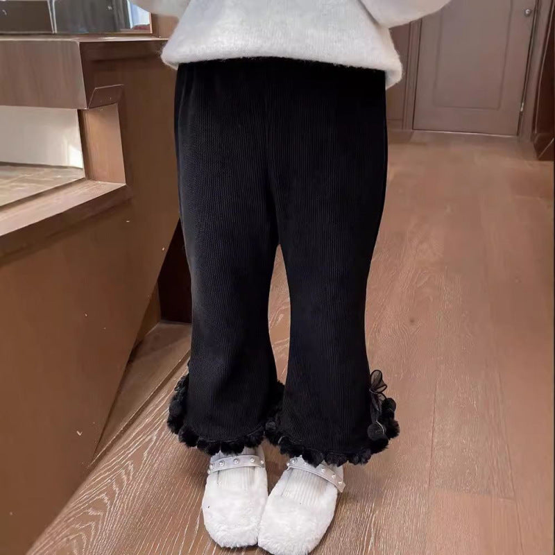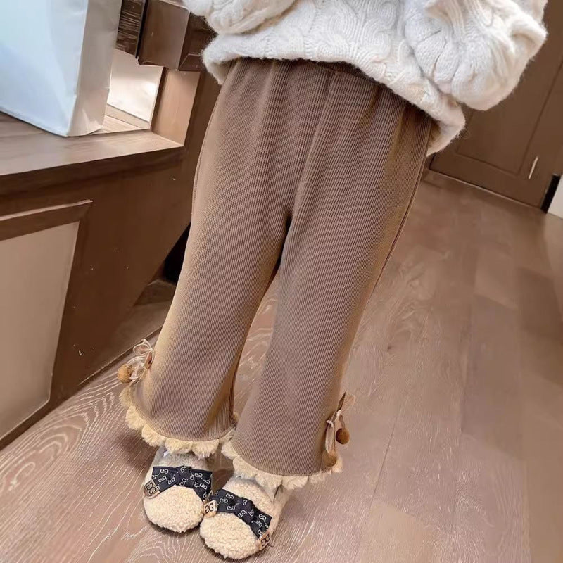 New girls' pants plus cashmere autumn and winter foreign style children's thickened one bell bottoms baby winter long pants