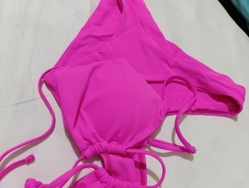 Make a stylish splash this season with our bold and beautiful halter bikini set. Featuring a vibrant printed design and trendy lace-up accents, this two-piece swimsuit will have you feeling confident and fashion-forward at the beach or pool.