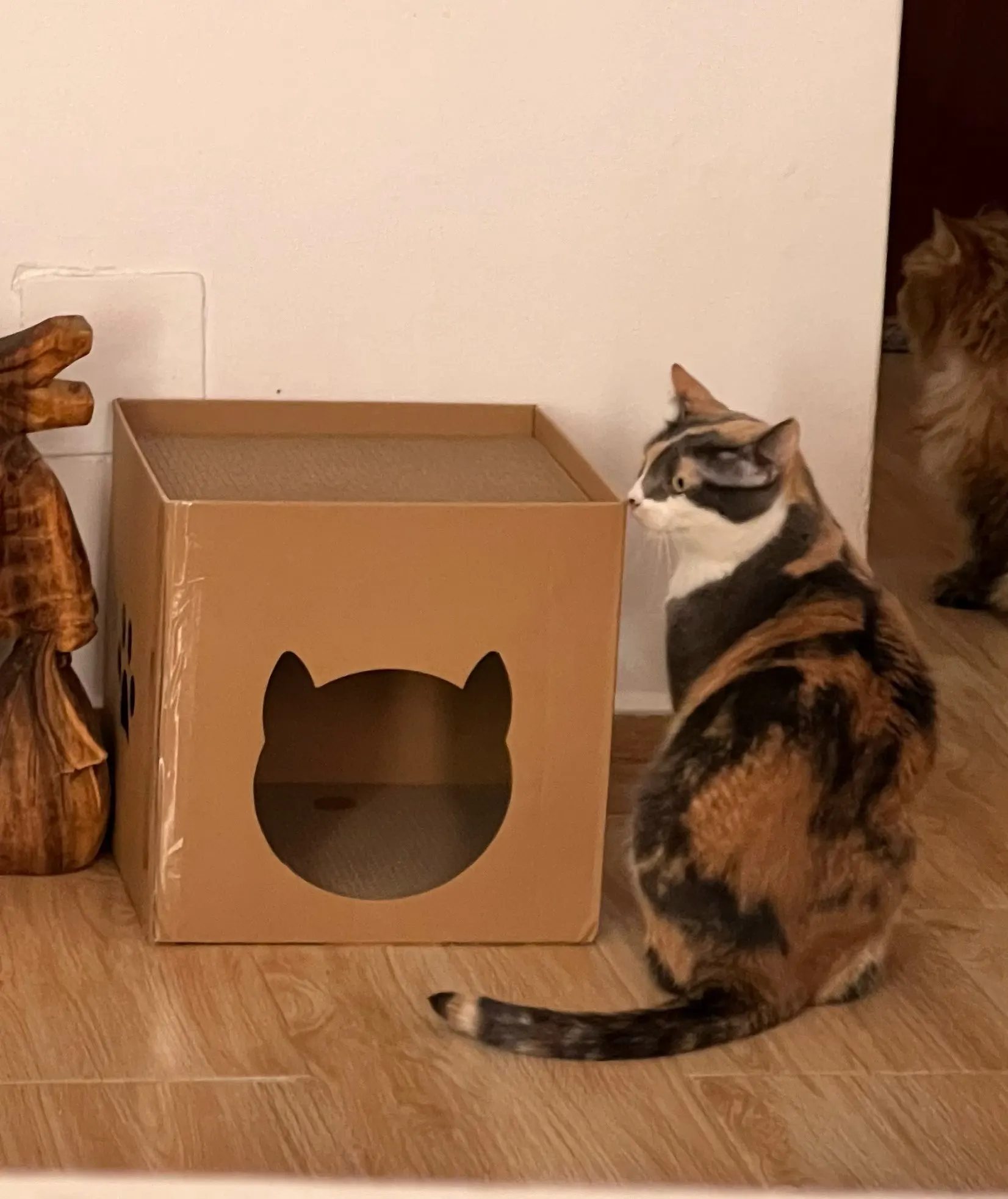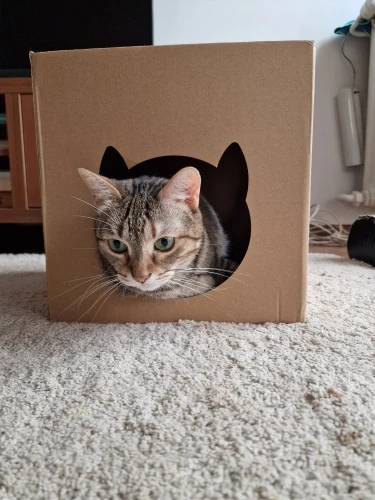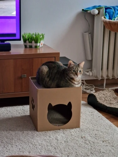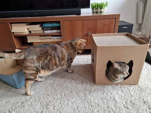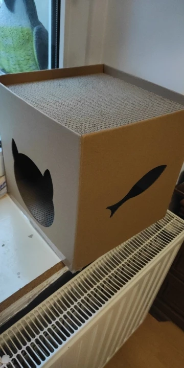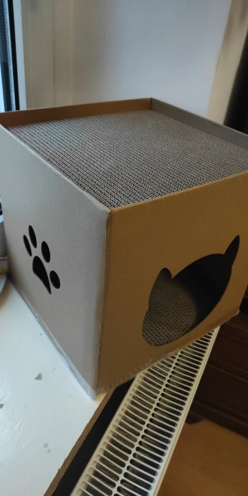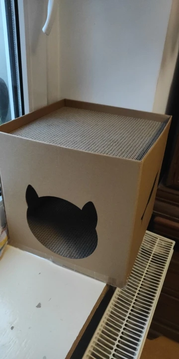 Complementing the scratch board is the folding corrugated cat litter tuba, which serves as a cozy hideaway and lounging spot for your cat. The tuba's enclosed design offers a sense of security and comfort, encouraging your cat to rest, nap, and play in a stimulating environment.
