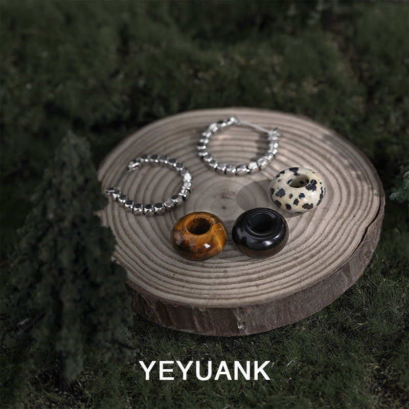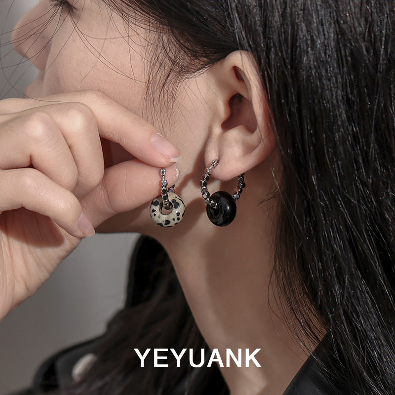 Wild sunflower fashion new retro style tiger eye stone black agate spot stone natural stone ear le earrings